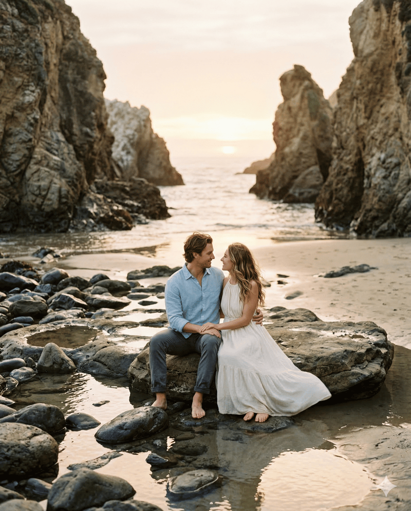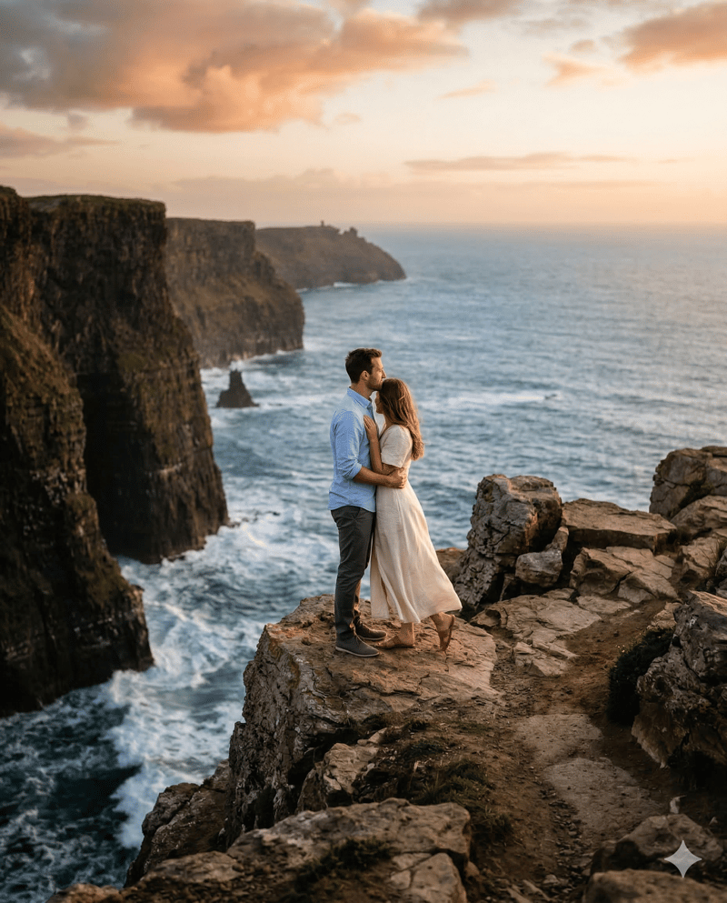 Dramatic height, ocean backdrop, and powerful framing. Check safety and accessibility in advance. The scale makes couples look beautifully intimate.